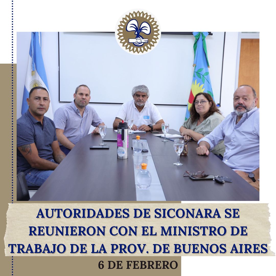 𝐀𝐮𝐭𝐨𝐫𝐢𝐝𝐚𝐝𝐞𝐬 𝐝𝐞 𝐒𝐢𝐂𝐨𝐍𝐚𝐑𝐀 𝐬𝐞 𝐫𝐞𝐮𝐧𝐢𝐞𝐫𝐨𝐧 𝐜𝐨𝐧 𝐞𝐥 𝐌𝐢𝐧𝐢𝐬𝐭𝐫𝐨 𝐝𝐞 𝐓𝐫𝐚𝐛𝐚𝐣𝐨 𝐝𝐞 𝐥𝐚 𝐏𝐫𝐨𝐯. 𝐝𝐞 𝐁𝐮𝐞𝐧𝐨𝐬 𝐀𝐢𝐫𝐞𝐬 Estimados/as afiliados, Durante la jornada de hoy, referentes de nuestro sindicato mantuvieron una reunión con el ministro de Trabajo de la Provincia de Buenos Aires, Walter Correa, con el propósito de dialogar acerca de...