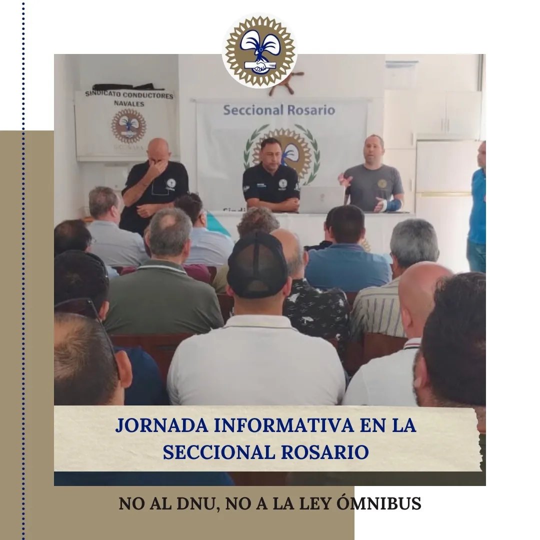 Durante el día de hoy realizamos una jornada con más de 50 compañeros/as afiliados/as, el Secretario General, Secretarios de la Seccional Rosario y su Comisión Directiva, con el fin de informar acerca de las medidas llevadas adelante por el Gobierno Nacional: cómo el DNU y la Ley Ómnibus impactan en nuestros puestos de trabajo, en la actividad diaria y en nuestra Obra Social.