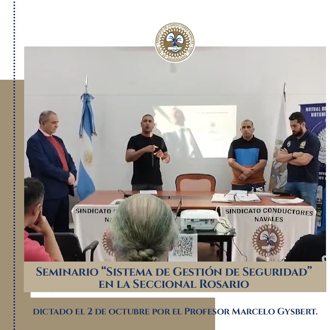 Estimados/as Afiliados/as, El pasado día miércoles 2 de octubre, en la sede de la Seccional de Rosario de nuestro sindicato, se llevó a cabo el 𝐒𝐞𝐦𝐢𝐧𝐚𝐫𝐢𝐨 "𝐒𝐢𝐬𝐭𝐞𝐦𝐚 𝐝𝐞 𝐆𝐞𝐬𝐭𝐢𝐨́𝐧 𝐝𝐞 𝐒𝐞𝐠𝐮𝐫𝐢𝐝𝐚𝐝”. El evento estuvo a cargo del Profesor Marcelo Gysbert y contó con la participación de un numeroso grupo de...