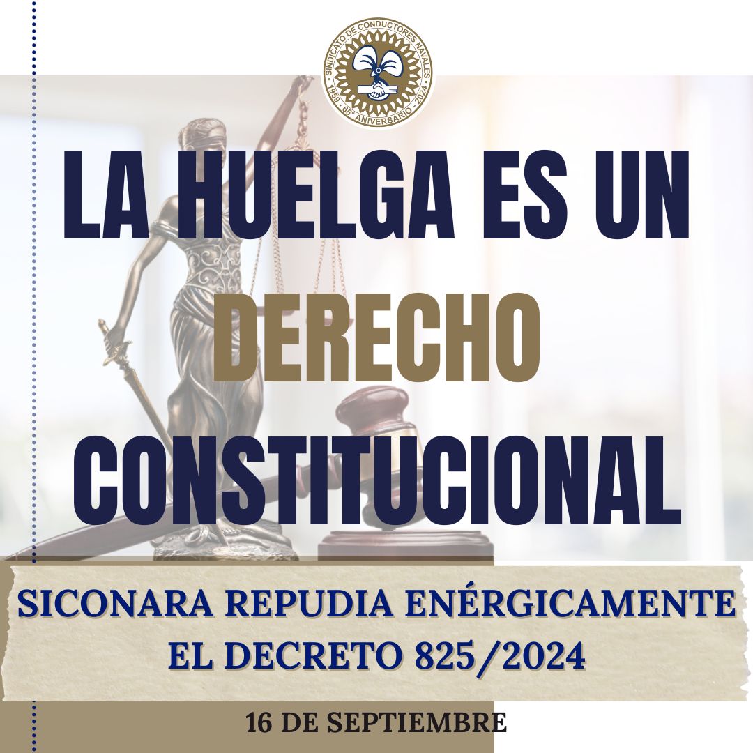 𝐃𝐞𝐬𝐝𝐞 𝐞𝐥 𝐒𝐈𝐂𝐎𝐍𝐀𝐑𝐀 𝐞𝐱𝐩𝐫𝐞𝐬𝐚𝐦𝐨𝐬 𝐧𝐮𝐞𝐬𝐭𝐫𝐨 𝐦𝐚́𝐬 𝐞𝐧𝐞́𝐫𝐠𝐢𝐜𝐨 𝐫𝐞𝐩𝐮𝐝𝐢𝐨 𝐚𝐥 𝐃𝐞𝐜𝐫𝐞𝐭𝐨 𝟖𝟐𝟓/𝟐𝟎𝟐𝟒, 𝐞𝐥 𝐜𝐮𝐚𝐥 𝐬𝐞 𝐩𝐫𝐨𝐩𝐨𝐧𝐞 𝐫𝐞𝐬𝐭𝐫𝐢𝐧𝐠𝐢𝐫 𝐥𝐚 𝐡𝐮𝐞𝐥𝐠𝐚 𝐞𝐧 𝐞𝐥 𝐬𝐞𝐜𝐭𝐨𝐫 𝐚𝐞𝐫𝐨𝐧𝐚́𝐮𝐭𝐢𝐜𝐨, 𝐚𝐭𝐞𝐧𝐭𝐚𝐧𝐝𝐨 𝐚𝐬𝐢́ 𝐜𝐨𝐧𝐭𝐫𝐚 𝐮𝐧 𝐝𝐞𝐫𝐞𝐜𝐡𝐨 𝐜𝐨𝐧𝐬𝐚𝐠𝐫𝐚𝐝𝐨 𝐞𝐧 𝐧𝐮𝐞𝐬𝐭𝐫𝐚 𝐂𝐨𝐧𝐬𝐭𝐢𝐭𝐮𝐜𝐢𝐨́𝐧. Estimados/as Afiliados/as, Desde hace un tiempo, las organizaciones sindicales del sector aeronáutico vienen desarrollando un plan de lucha a...
