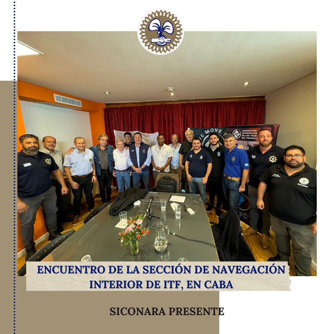 Estimados/as Afiliados/as Ángel Raimundi (Secretario Adjunto) y Lucas Rosano (miembro de Comisión Directiva), representando a nuestro SICONARA, estuvieron presentes en el encuentro de la sección de Navegación Interior de la ITF que se realizó en CABA. El mismo constó de dos jornadas a lo largo del día de ayer...
