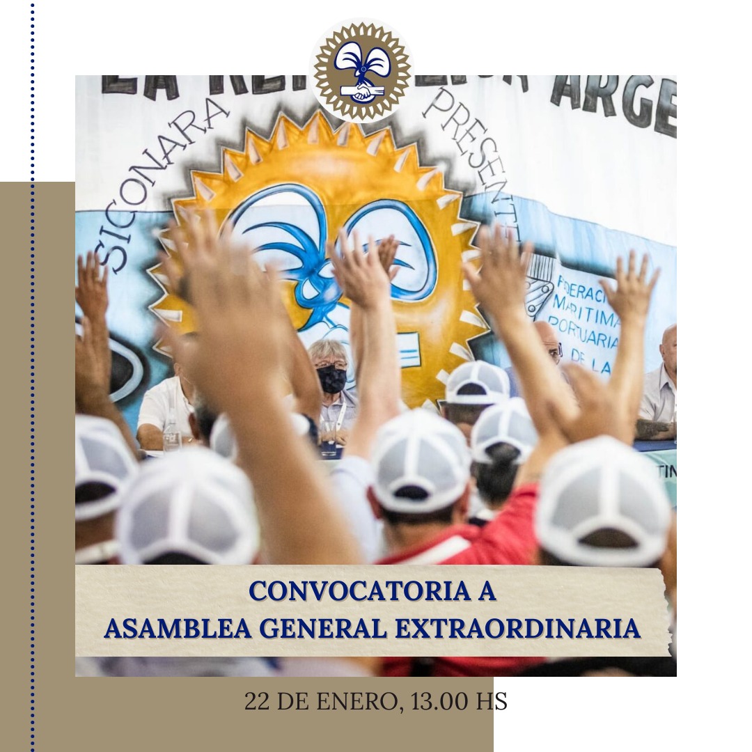 Estimados/as Afiliados/as: 𝐂𝐨𝐧𝐯𝐨𝐜𝐚𝐭𝐨𝐫𝐢𝐚 𝐚 𝐀𝐒𝐀𝐌𝐁𝐋𝐄𝐀 𝐄𝐗𝐓𝐑𝐀𝐎𝐑𝐃𝐈𝐍𝐀𝐑𝐈𝐀 - 22 DE ENERO 2024 A LAS 13:00 HS En el marco del plan de lucha contra las medidas arbitrarias del Gobierno que lesionan gravemente los intereses de todos los trabajadores, la Comisión Directiva del Sindicato Conductores Navales de la República Argentina (Si.Co.Na.R.A.) convoca...