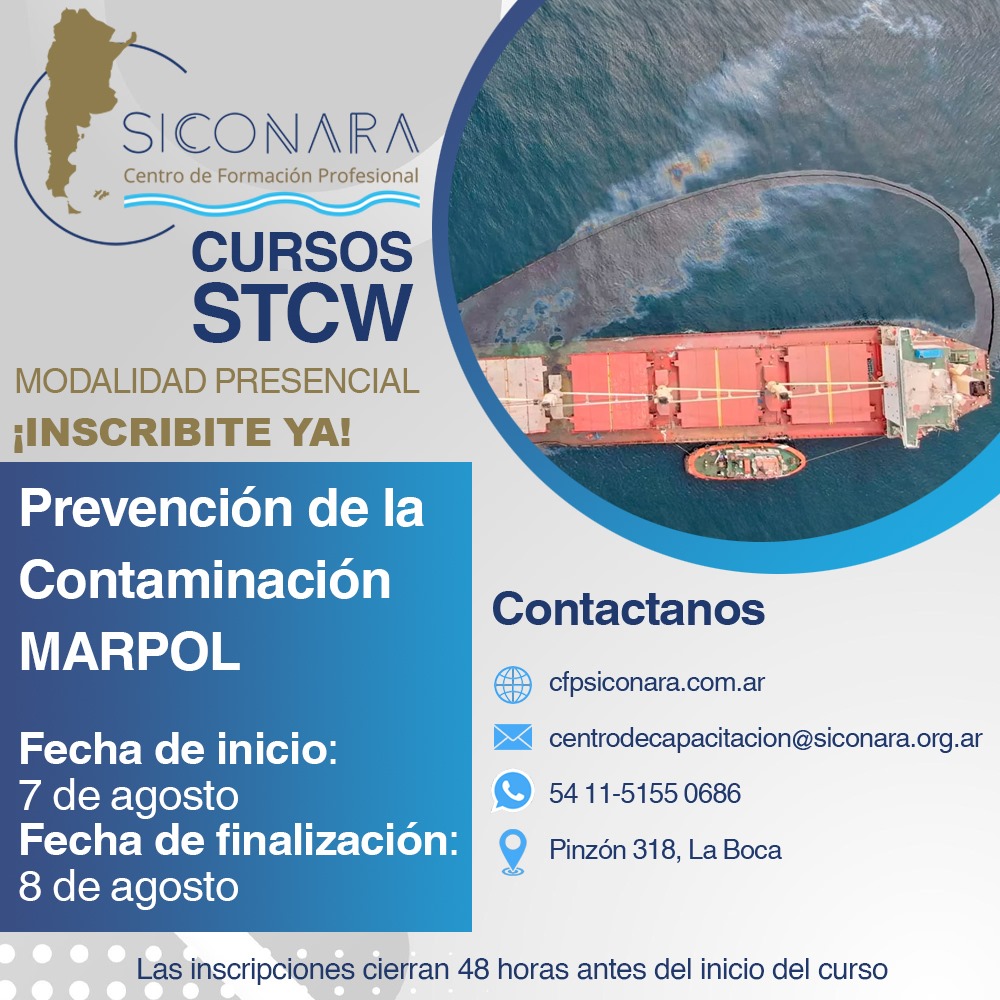 𝗖𝗨𝗥𝗦𝗢𝗦 𝗦𝗧𝗖𝗪 𝗕𝗔́𝗦𝗜𝗖𝗢𝗦: Prevención de la Contaminación MARPOL 𝗖𝗘𝗥𝗧𝗜𝗙𝗜𝗖𝗔𝗗𝗢𝗦 𝗔𝗥𝗠𝗔𝗗𝗔 𝗔𝗥𝗚𝗘𝗡𝗧𝗜𝗡𝗔 Formamos profesionales conectando talento y tecnología. Entrá en: https://cfpsiconara.com.ar/ donde encontrarás todos los cursos que dictamos: Le das clic al botón de inscripción en http://inscripcion.cfpsiconara.com.ar/ completas los datos y a la brevedad te enviamos un mail de confirmación. No...