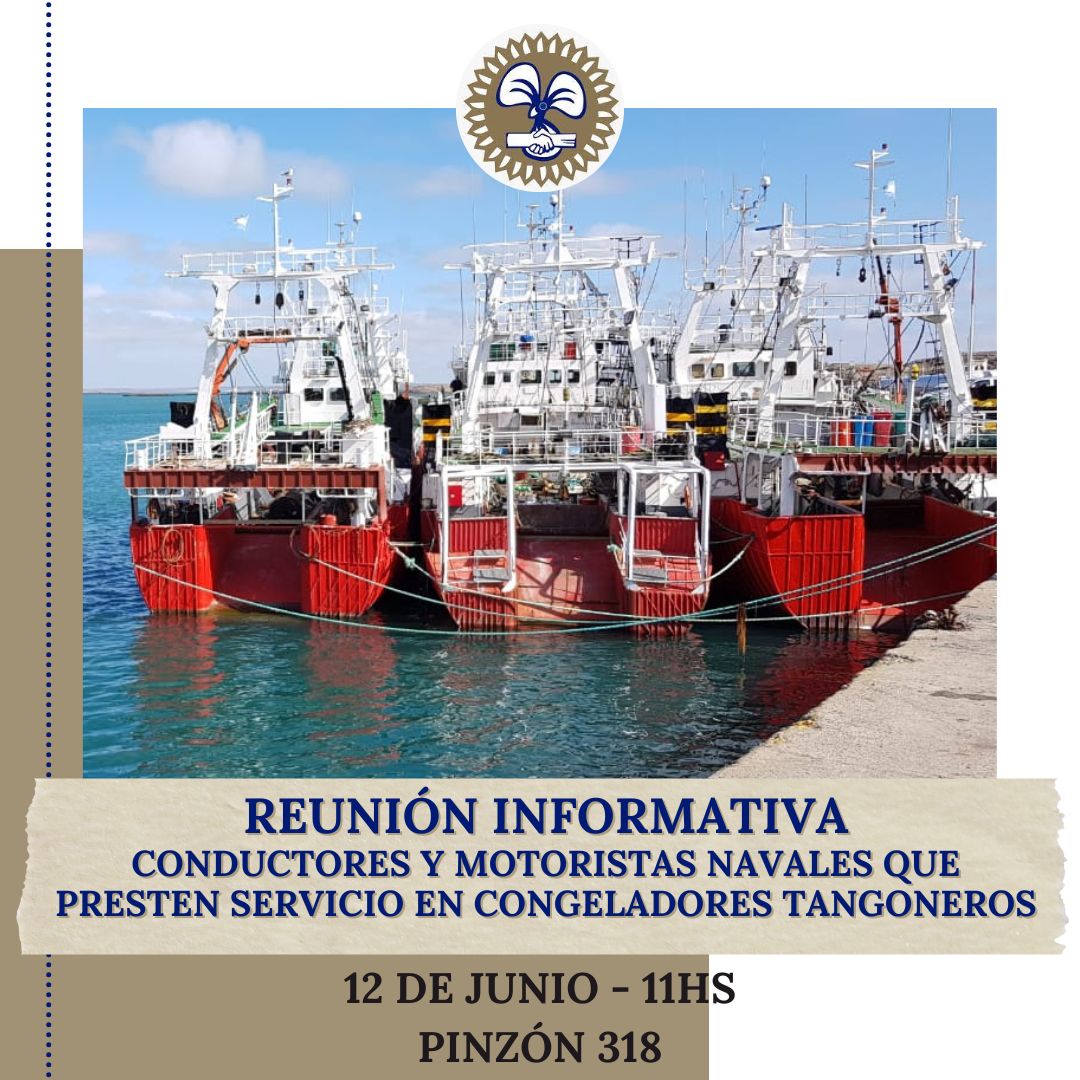 Estimados/as afiliados/as, Continuando con las conversaciones mantenidas con nuestros compañeros en los muelles durante la semana pasada para informar sobre el conflicto que se viene desarrollando en el sector, convocamos a los compañeros conductores y/o motoristas navales efectivos en los congeladores tangoneros a una reunión. La misma se llevará a...