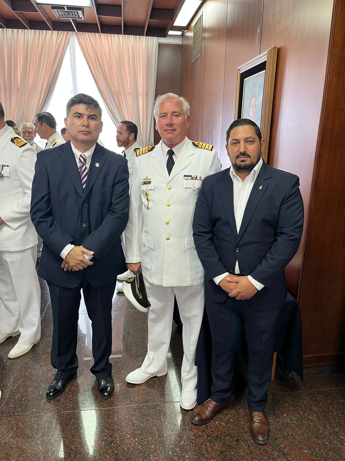 Nuestro representante, en el vino honor servido al finalizar la ceremonia, tuvo oportunidad de adelantarle al Capitán Montero algunos temas competencia del área a su cargo que son motivo de preocupación para el Sindicato y que serán analizados en un próximo encuentro a realizarse. Cabe recordar que de la Dirección de Intereses Marítimos depende la Subsecretaría de Formación, Capacitación y Titulación del Personal Embarcado, área clave para el desarrollo y ejercicio de la profesión y es el organismo asesor de la Subsecretaría de Puertos, Vías Navegables y Marina Mercante, Autoridad de Aplicación del Reglamento de Formación y Capacitación del Personal Embarcado de la Marina Mercante, REFOCAPEMM.