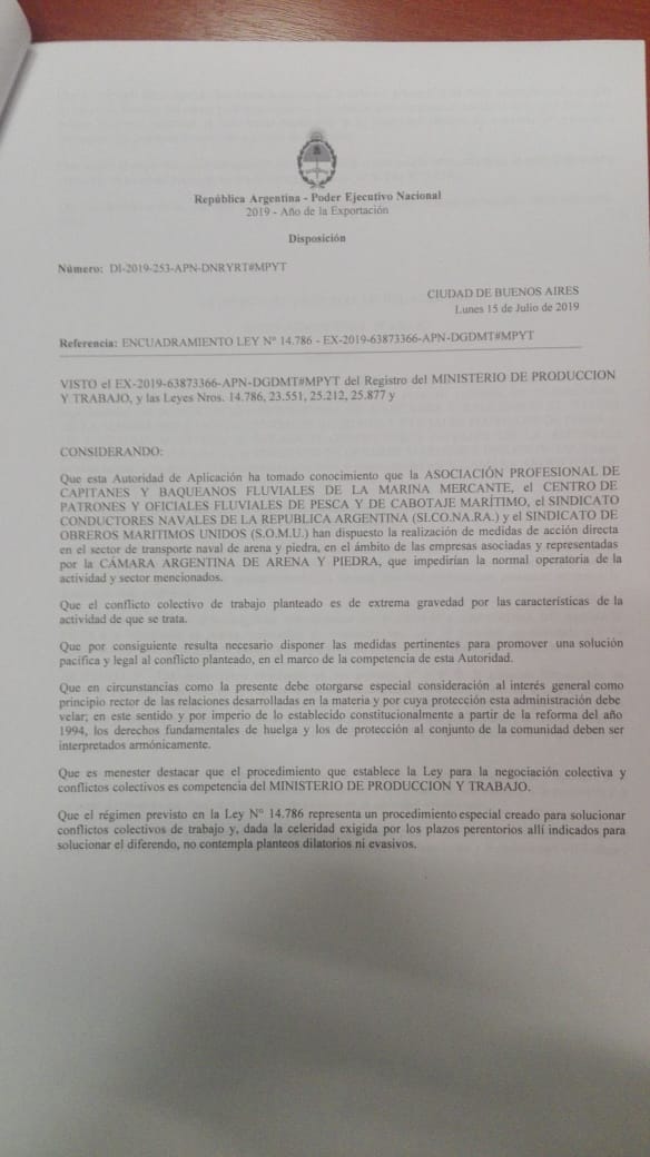 En el día de la fecha y luego de la medida de fuerza efectuada en TODO el sector ARENERO, recibimos la citación de CONCILIACIÓN OBLIGATORIA correspondiente a la CÁMARA DE ARENA Y PIEDRA, solicitud para la negociación de la paritaria correspondiente y con vigencia al 31 de marzo del 2019 para el día jueves 18 de Julio del 2019 a las 17:00 hs